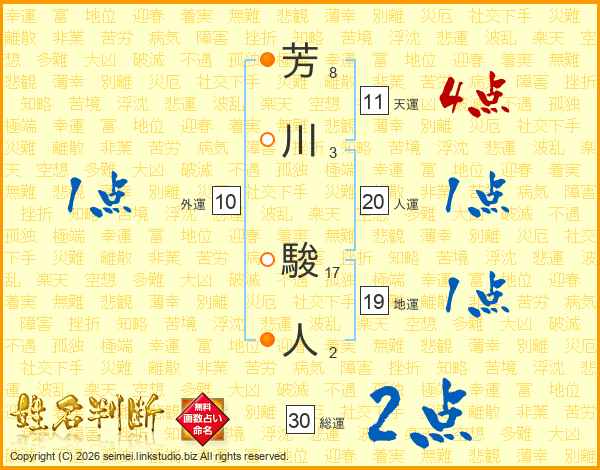 芳川駿人さんの総運は30画の2点!