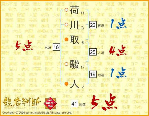 荷(11画)川(3画)取(8画) 駿(17画)人(2画)
