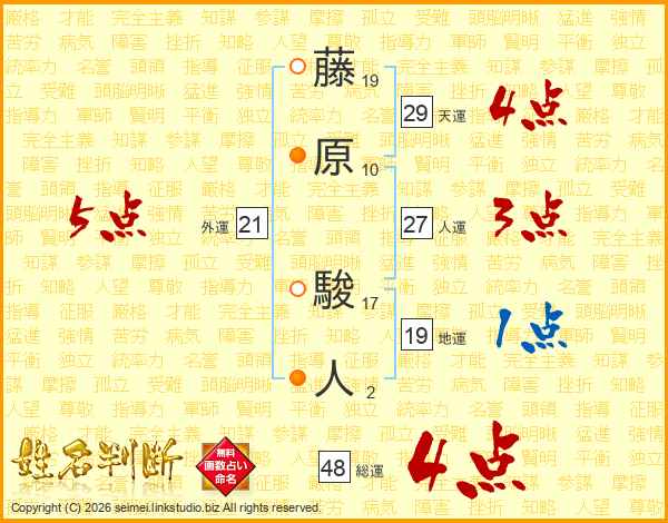 藤原駿人さんの総運は48画の4点!