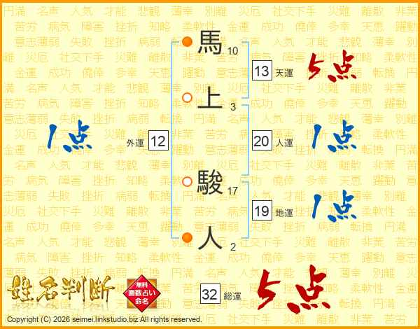 馬上駿人さんの総運は32画の5点!