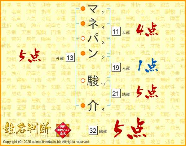 マネパン駿介さんの総運は32画の5点!