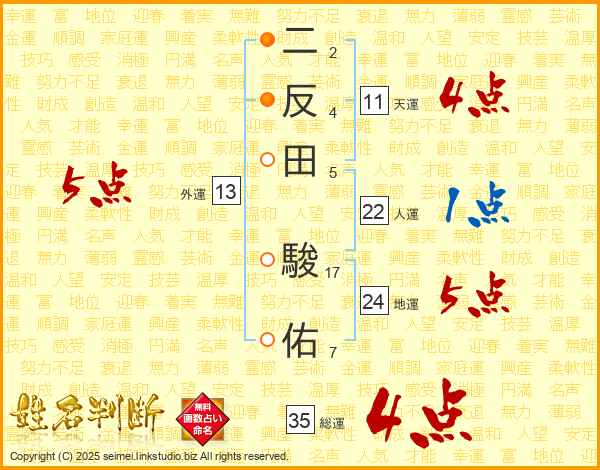 二反田駿佑さんの総運は35画の4点!