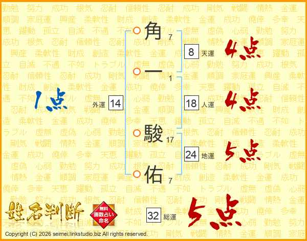 角一駿佑さんの総運は32画の5点!