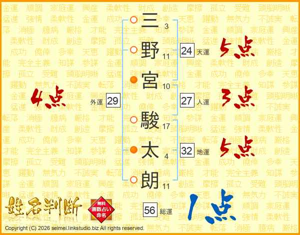 三野宮駿太朗さんの総運は56画の1点!