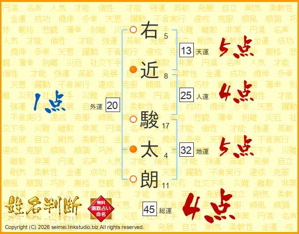 右近駿太朗さんの総運は45画の4点!
