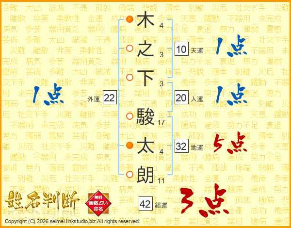 木之下駿太朗さんの地運は32画の5点!