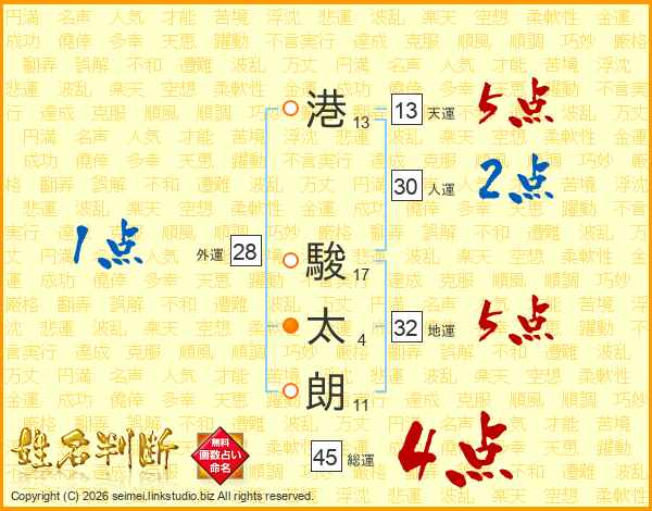 港駿太朗さんの総運は45画の4点!