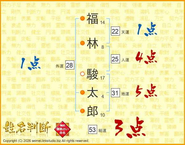 福林駿太郎さんの総運は53画の3点!