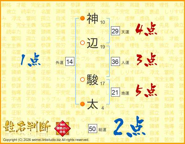 神辺駿太さんの天運は29画の4点!
