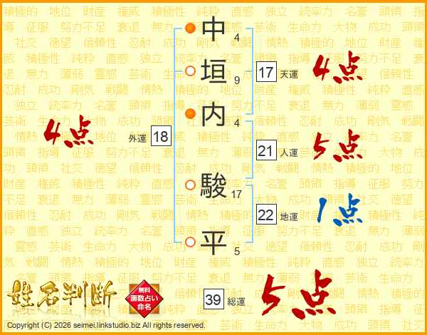 中垣内駿平さんの総運は39画の5点!