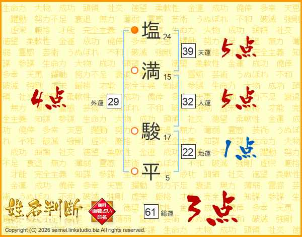 塩(24画)満(15画) 駿(17画)平(5画)