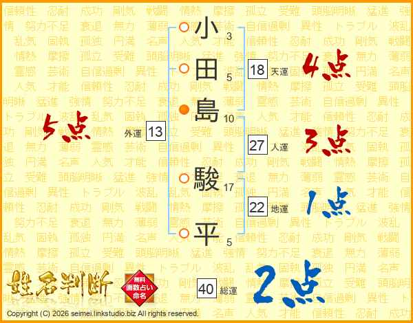 小(3画)田(5画)島(10画) 駿(17画)平(5画)