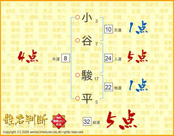 小谷駿平さんの総運は32画の5点!