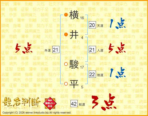 横井駿平さんの人運は21画の5点!