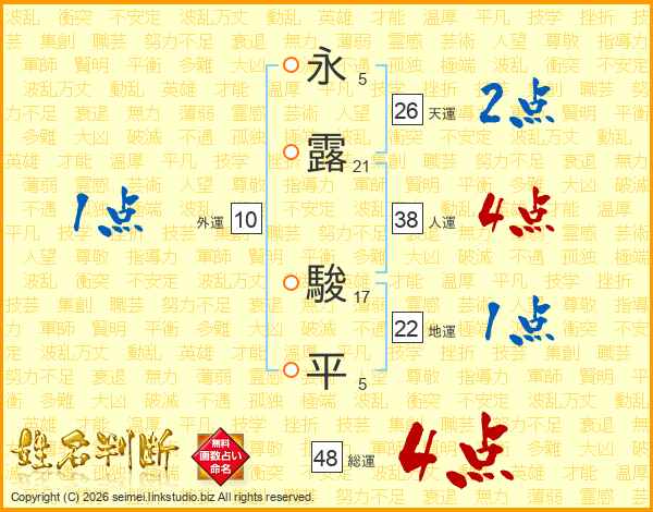 永(5画)露(21画) 駿(17画)平(5画)