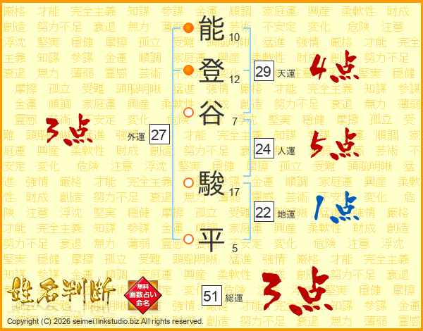 能(10画)登(12画)谷(7画) 駿(17画)平(5画)
