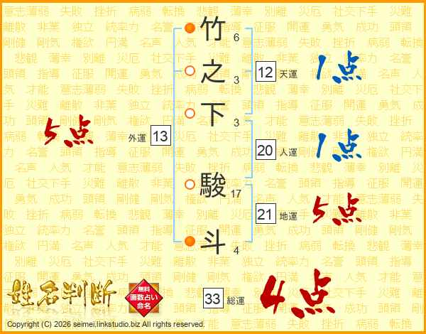 竹(6画)之(3画)下(3画) 駿(17画)斗(4画)