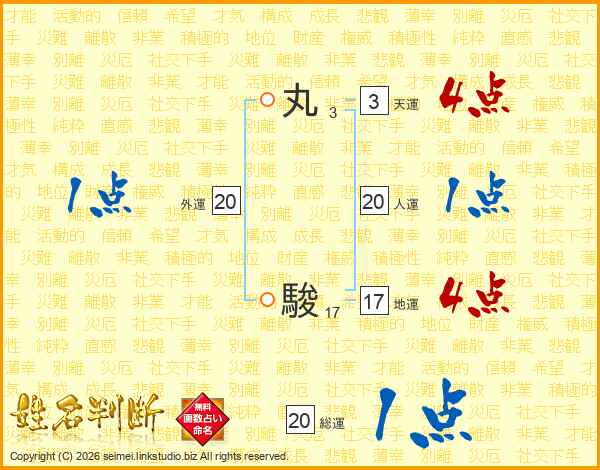 丸駿さんの人運は20画の1点!