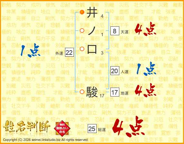 井ノ口駿さんの総運は25画の4点!