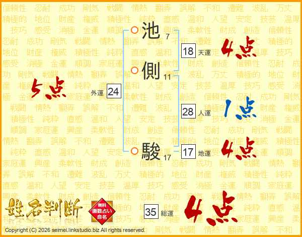 池側駿さんの総運は35画の4点!