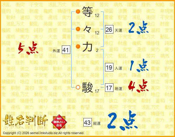 等々力駿さんの天運は26画の2点!