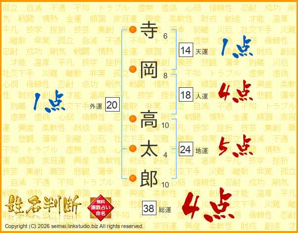 寺岡高太郎さんの総運は38画の4点!