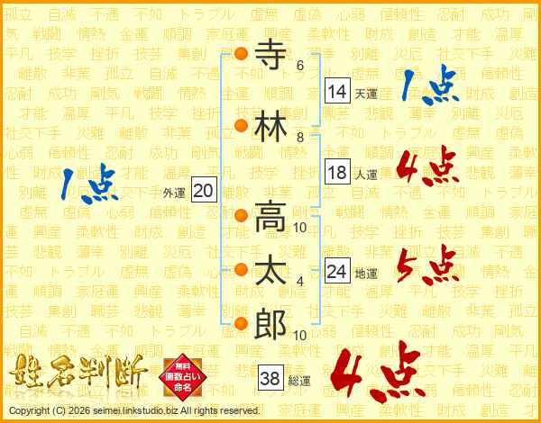 寺林高太郎さんの総運は38画の4点!