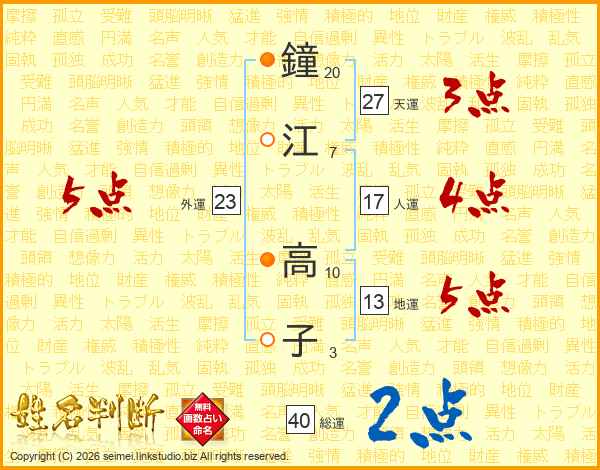 鐘江高子さんの外運は23画の5点!