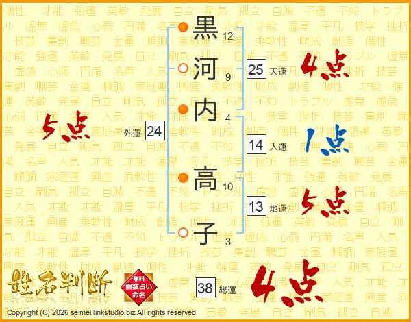 黒河内高子さんの総運は38画の4点!