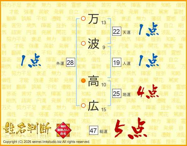 万波高広さんの総運は47画の5点!