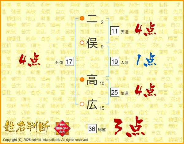 二俣高広さんの天運は11画の4点!