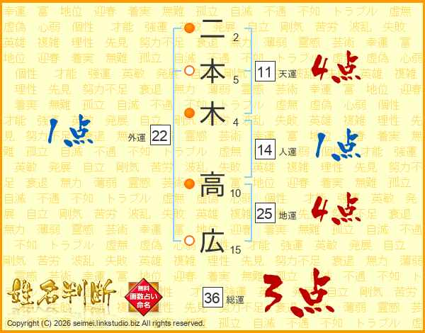 二本木高広さんの地運は25画の4点!