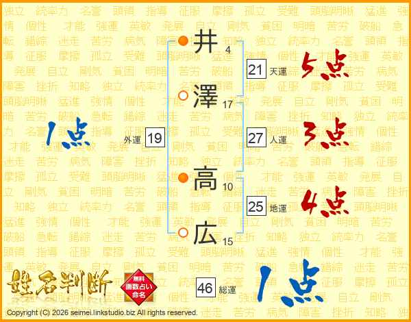 井(4画)澤(17画) 高(10画)広(15画)