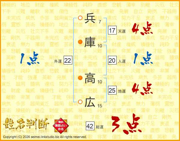 兵庫高広さんの地運は25画の4点!
