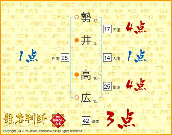 勢井高広さんの天運は17画の4点!