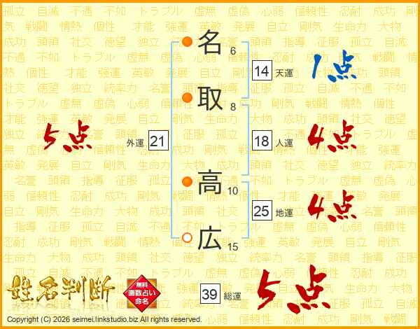 名取高広さんの総運は39画の5点!