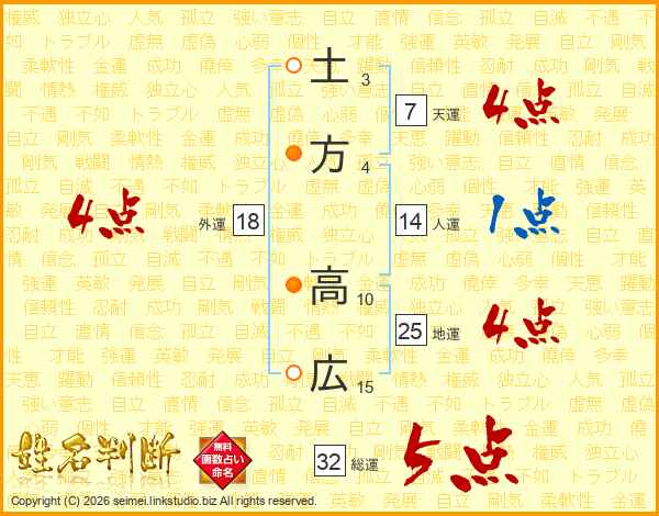 土方高広さんの地運は25画の4点!