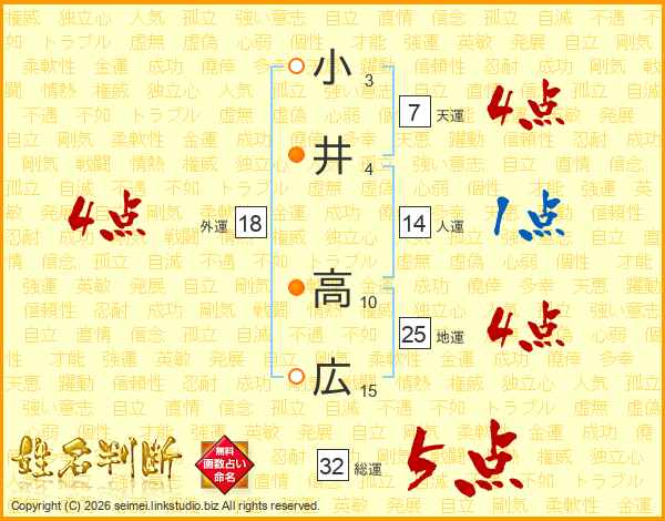 小井高広さんの総運は32画の5点!