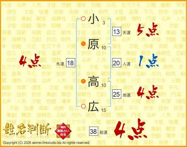 小原高広さんの総運は38画の4点!