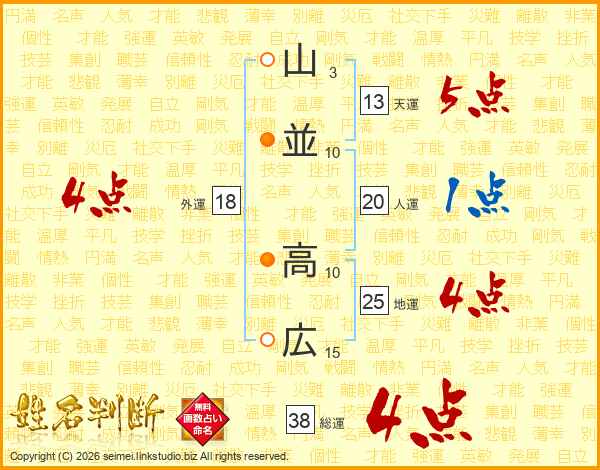 山並高広さんの総運は38画の4点!