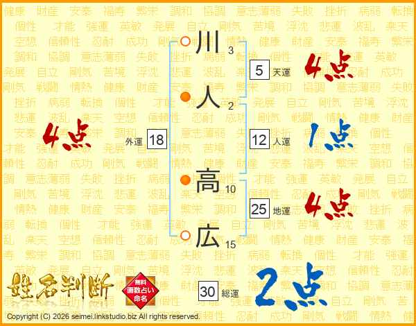 川人高広さんの地運は25画の4点!