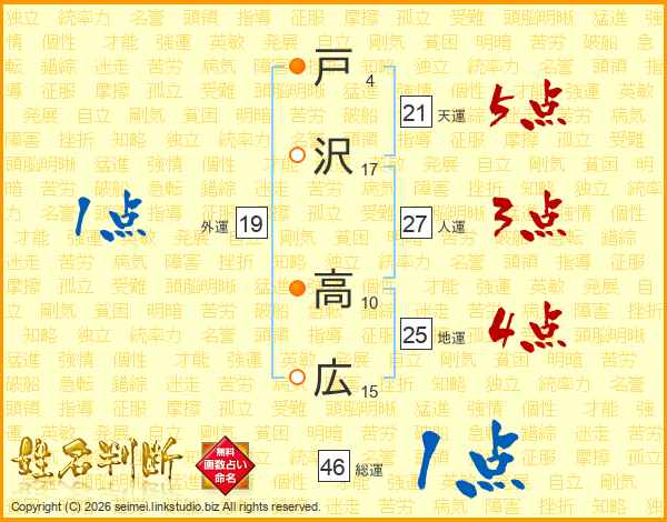 戸沢高広さんの地運は25画の4点!