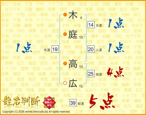 木庭高広さんの総運は39画の5点!