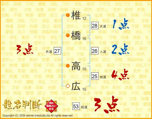 椎橋高広さんの総運は53画の3点!