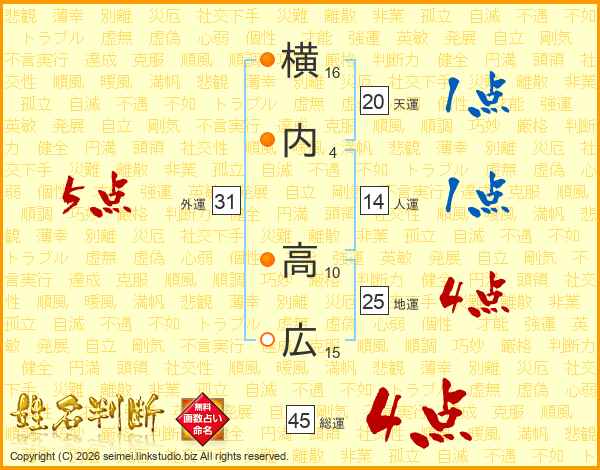 横内高広さんの総運は45画の4点!