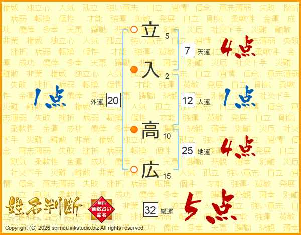 立入高広さんの地運は25画の4点!