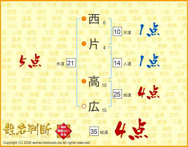 西片高広さんの総運は35画の4点!