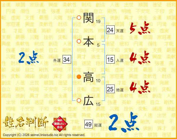 関本高広さんの地運は25画の4点!