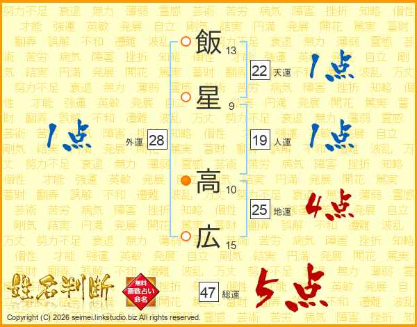 飯星高広さんの総運は47画の5点!
