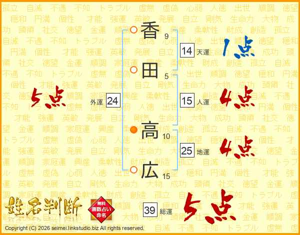 香田高広さんの総運は39画の5点!
